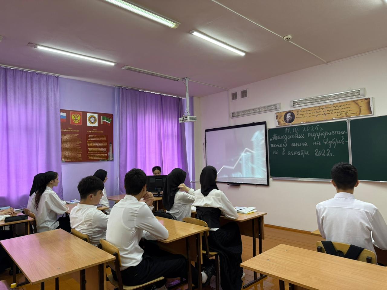 Сотрудником ФСБ отдела Шалинского района проведено профилактическое мероприятие в МБОУ "СОШ №2 с. Белгатой" на тему: «Последствия террористического акта на Дубровке в октябре 2002 года.».
